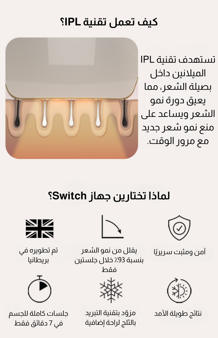 سموث سكين بيور سويتش – أول جهاز IPL في العالم بتقنية 3 في 1 لإزالة الشعر