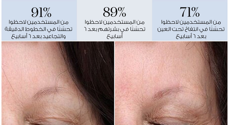 أفاد المستخدمون بانخفاض بنسبة 35٪ في الخطوط الدقيقة بعد 4 أسابيع، و71٪ لاحظوا تحسنًا في الانتفاخ تحت العينين، و89٪ شهدوا تحسنًا عامًا في البشرة بعد 6 أسابيع.